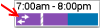 Schedule tags appear as a thin colored bar near the bottom of a date cell that identifies additional custom characteristics of a schedule day. The text under the tag shows the name of the tag; hold the cursor over Tap the colored bar to see more details. | |
